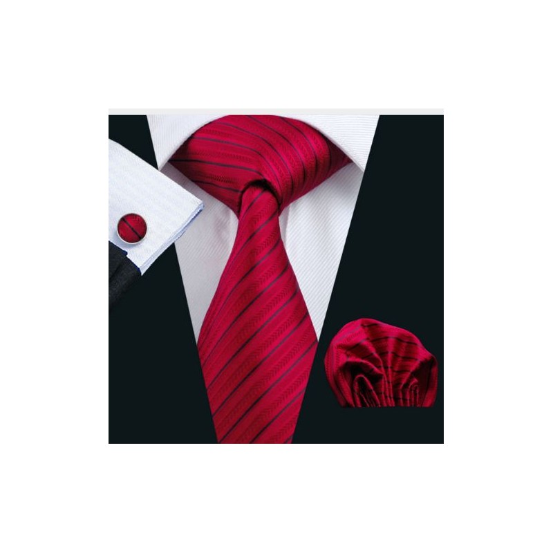 Elegantní pánská souprava obsahuje kravatu, kapesníček a manžetové knoflíčky - vše ve stejném dezénu.